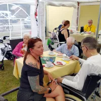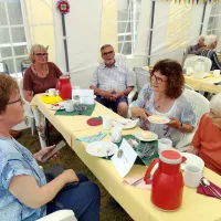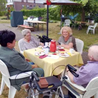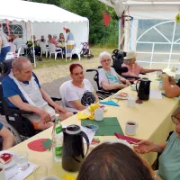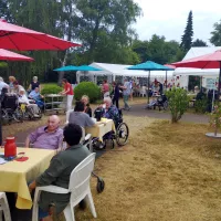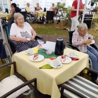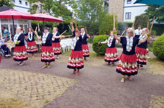 Ende Juni fand wieder unser traditionelles Sommerfest der Bewohner zusammen mit den Angehörigen in unserem wunderschönen Park statt. Das diesjährige Motto lautete: „Mittsommer“. Musikalisch begleitete uns Dieter Steinicke mit Keyboard und Saxophon. Eine besondere Einlage bot Tanzgruppe „Keala Hula“ mit ihren hawaiianischen Tänzen. Es gab leckeren Kuchen und Kaffee sowie später auch köstliche Grillspezialitäten. Ein rundum gelungenes Sommerfest!