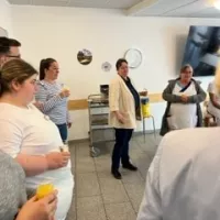 Daher schenkte Michaela Rollert, Pflegedienstleitung als Zeichen Ihrer Wertschätzung und Anerkennung (und nicht nur für's Laufpensum) den Pflegekräften coole "Pflegesocken" zum TAG DER PFLEGE 2023.
