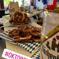 Wir scheuen dabei kein Klischee: Dirndl, Weißwurst mit Brezel, eine Maß und auffi geht's mit zünftiger Musik von Herrn Moser.