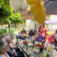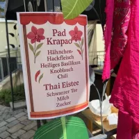 An Bord: alle Bewohner mit Appetit auf Pad Krapao und Thai Eistee.