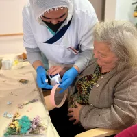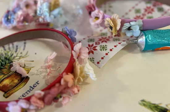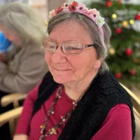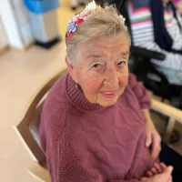 Heute wurden in der Betreuung Haarreife mit Blumen verziert, um unseren Bewohnerinnen ein Lächeln zu entlocken. Es hat funktioniert!