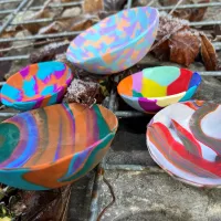 Feiern Sie unsere neue Kollektion aus der Welt der Kreativität: die über einer Glasschale geformten und im Ofen gehärteten Fimoschalen.
