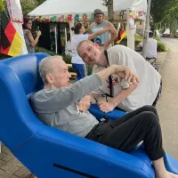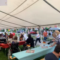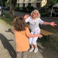 Zu Höchstleistungen aufgerufen waren auch die Mitarbeiter unseres Hauses. 200 Gäste wollten verköstigt und unterhalten werden! Unterstützt von Herrn Moos, Alleinunterhalter, den A-Town-City-Girls aus Arfurt und den Mitarbeitern der Betreuung wurde das Sommerfest 2024 DAS, was es versprach: eine tolle Party mit sportlichen Einlagen!