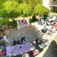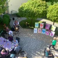Das große Plus der Kreativgruppe ist, dass man hier nicht sprechen können muss. Farben und Formen sind der Mittelpunkt. Diese haben eine eigene Sprache. Malen, Zeichnen, Kreativ sein wecken ungeahnte Fähigkeiten und machen gute Laune!