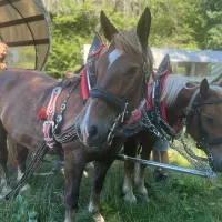 Die Fahrt im Planwagen über die Lahnhöhen mit Lisa und Sophia im Gespann war etwas ganz Besonderes. Mit einer Fahrtgeschwindigkeit von ca. 4 km/h verändert sich die Welt: ein Ausflug für Genießer!