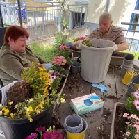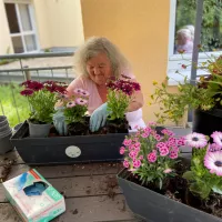 Uns blüht was! Wer anderen eine Blume pflanzt, blüht selber auf! Gemeinsam haben wir die Balkonkästen für unser Haus neu bepflanzt. Sehr zur Freude der Bewohner*innen, die selbst früher gerne im Garten gearbeitet oder Ihren Balkon begrünt haben. Zurück
