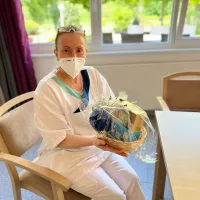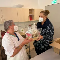 Zum "Tag der Pflege" übergibt Pflegedienstleitung Yasmin Hofmann unseren Pflegekräften Wellnesskörbe als kleinen Dank!