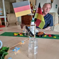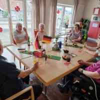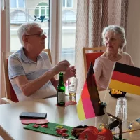 Dämmershoppen Unser traditionsreicher Dämmerschoppen fand im Juni in unserer Einrichtung statt. Ganz im Zeichen der Europameisterschaft verbrachten die Bewohner ein gemütlichen Abend bei Knabbereien und einem "Bierchen". Zurück