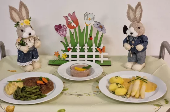 Der Osterhase kommt zu Besuch... Besuch vom Osterhasen in der DOREAFAMILIE Saarbücken. Leckeres Essen aus der Küche und bunte Osterkörbchen rundeten den Tag ab. Zurück