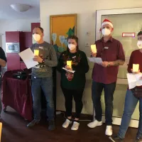 Weihnachtsfeier in der DOREAFAMILIE Auch in diesem Jahr konnten sich unsere Bewohner an unserer Weihnachtsfeier erfreuen mit leckeren Essen wie Hirschrollbraten, Rotkohl und Spätzle oder Gebratenen Tofu mit Rotkohl und Spätzle. Zurück