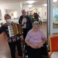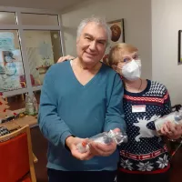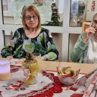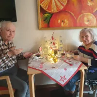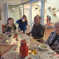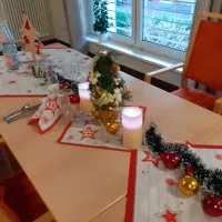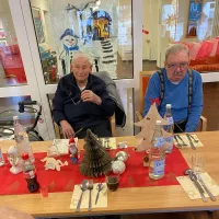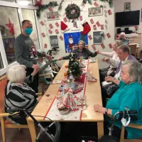 Verteilte seine Gaben. Bei einem leckeren Essen und einem Glas Wein, konnten alle fröhlich sein.