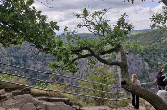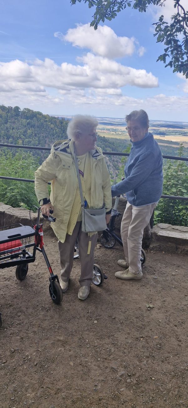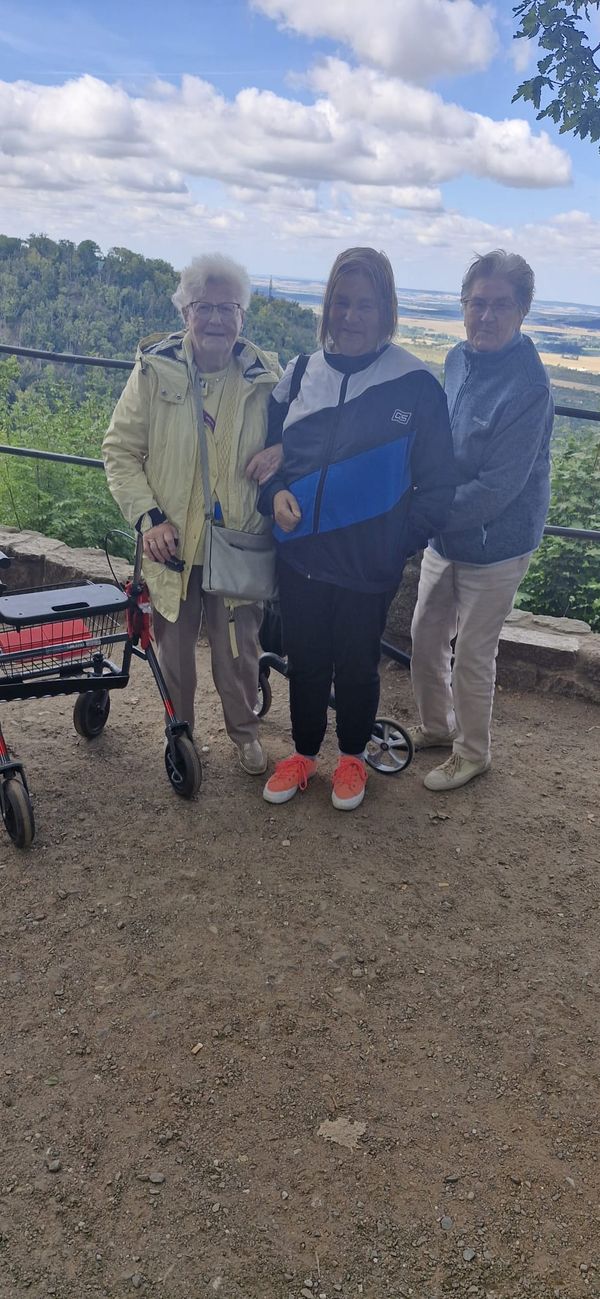 Am 17.08.2025 machte eine Gruppe Bewohnerinnen und Bewohner einen ganz besonderen Ausflug nach Thale, um den Hexentanzplatz zu besuchen. Es gab viel zu sehen, vom auf dem Dach stehenden Hexenhaus bis hin zu dem neu gestalteten Hexendorf. Vom Hexentanzplatz aus hat man einen wunderbaren Blick in das schöne Bodetal und auf die sagenumwobene Rosstrappe. Diese Geschichte wurde unseren Ausflüglern von Herrn Kowalski vom Begleitenden Dienst vor Ort erzählt. Unsere Bewohner genossen den Ausblick und fanden an jeder Ecke Skulpturen und Figuren, die bewundert werden konnten. Nachdem sich bei Kaffee und Kuchen gestärkt wurde, konnte die Heimreise angetreten werden.
