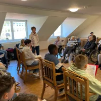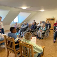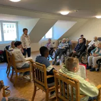 Ebenfalls am Zukunftstag besuchten uns Schülerinnen und Schüler der 5. Klasse der Oberschule Seesen. Diese hatten in ihrem Unterricht Zusammenfassungen von bekannten Märchen geschrieben und diese den Bewohnerinnen und Bewohnern nun vorgetragen. Nach jedem Märchen wurde eine Pause gemacht und unsere Bewohner konnten raten, um welches Märchen es sich handelte.