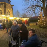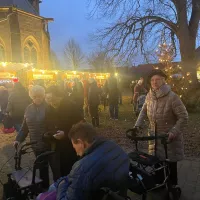 Am dritten Adventswochenende fuhr eine Gruppe Bewohner zum Weihnachtsmarkt nach Rhüden. Dort wurden sie von unserer Pflegedienstleitung, Frau Janine Nobel, in Empfang genommen. Unter unseren Bewohner waren einige ehemalige Rhüdener, was zu einem großen "Hallo" unter den Anwesenden und reichlich unterhaltsamen Gesprächen führte.