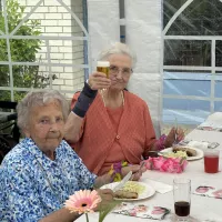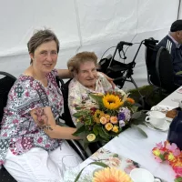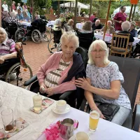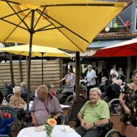 Am Tag des Festes herrschte schon am Morgen reges Treiben. Auch ein großer Regenschauer tat der guten Stimmung keinen Abbruch. Schnell wurden die nassen Tischdecken ausgetauscht und schon konnten die Bewohner sich einen Platz in den Zelten oder auf der Terrasse suchen.