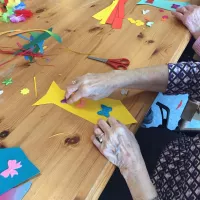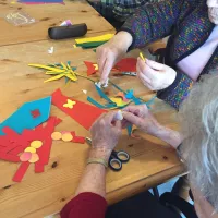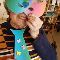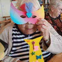 Bei fröhlicher Karnevalsmusik sangen sich unsere Bewohnerinnen schon einmal in Stimmung und konnten schnell die ersten Erfolge bei den Basteleien präsentieren.