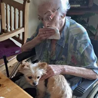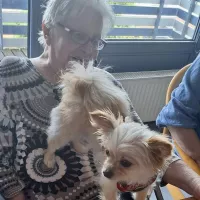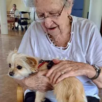 In dieser Woche war wieder viel los in unserer Einrichtung. Unser Mitarbeiter des Begleitenden und Sozialen Dienstes Herr Kowalski brachte mal wieder seine kleine Hündin Leni mit zum Dienst und sorgte so für strahlende Augen bei unseren Bewohnerinnen und Bewohnern. aber auch für die kleine Leni sind die Besuche ein Spaß und sie genießt die vielen Streicheleinheiten sehr.