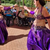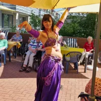 Voller Vorfreude erwarteten die Bewohnerinnen das Tanzduo SiRa, bestehend aus Simone und Rabea aus Hemmingen. Die beiden Tänzerinnen, die schon mehrfach in unserer Einrichtung aufgetreten sind, begeisterten in ihren bunten Kostümen. Sie zeigten ein abwechslungsreiches Repertoire mit Tänzen aus aller Welt. Besonders begeisterten hier die faszinierenden Bauchtanzvorführungen mit der dazugehörigen orientalischen Musik, die unsere Bewohnerinnen und Bewohner in die Welt von 1001 Nacht entführte...