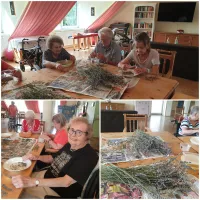 Aufgrund der guten Wetterbedingungen wuchs auch in diesem Jahr der Lavendel wieder ganz hervorragend und die Beete in den Gärten dufteten ganz wunderbar. Um uns auch für den Rest des Jahres den Duft des Sommers ins Haus zu holen wurden wieder schön Duftsäckchen gebastelt, die mit Lavendel befüllt wurden. Dafür wurde jede Menge der lila Blüten gestrippelt. Alle Bewohner waren mit Eifer dabei und verbrachten einen schönen Nachmittag mit guten Gesprächen.