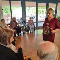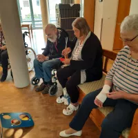 Am 08.07.2025 fand unsere diesjährige Sommerolympiade statt. In verschiedenen Einzelspielen konnten unsere Bewohnerinnen und Bewohner ihre Geschicklichkeit, Zielgenauigkeit, Motorik und Koordination unter Beweis stellen. In geselliger Runde gab es dabei auch eine Menge zu lachen. Bei den einzelnen Spielen konnten Punkte gesammelt werden, die am Ende zu einer Gsamtpunktzahl addiert wurden. So konnten unsere Mitarbeiterinnen des Begleitenden Dienstes ganz einfach die drei Erstplatzierten ermitteln. Natürlich gab es für alle Teilnehmer eine Urkunde zur Erinnerung.