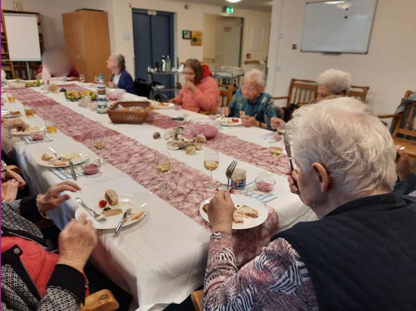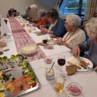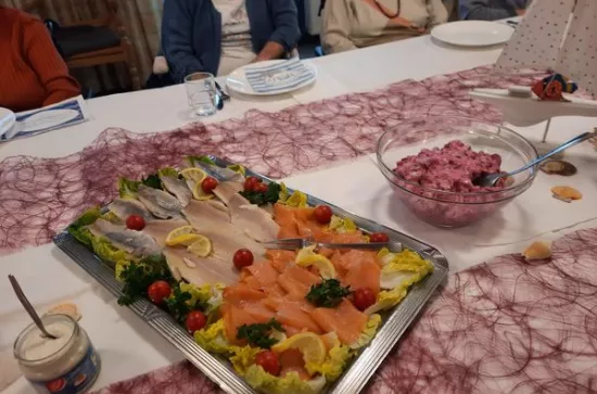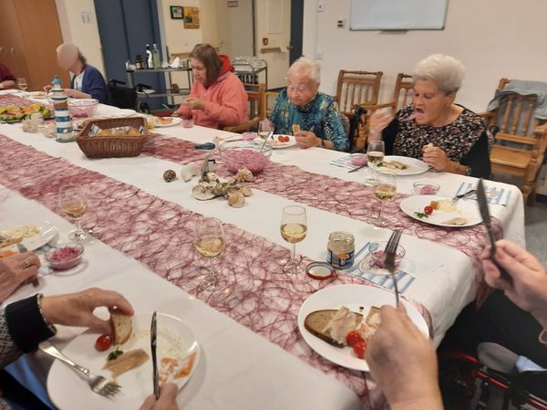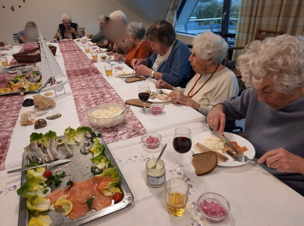 Gleich an zwei Abenden ließen es sich unsere Bewohnerinnen so richtig gut gehen. Im Rahmen ihrer Frauenrunde wurde einmal zu einem Fischbüffett und ein anderes Mal zum Schlachteessen eingeladen. Die Platten waren mit allerlei Leckereien belegt.