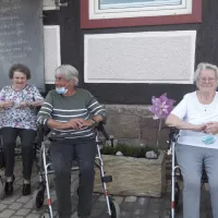 Ein Ausflug in die benachbarte Gemeinde Bilderlahe führte einige Bewohnerinnen in das Gasthaus Fritz Willers. In rustikalem Ambiente genossen unsere Ausflüglerinnen regionale und saisonale Hausmannskost. Auch wenn es beim Essen etwas ruhiger war... so gab es vorab und hinterher eine Menge zu erzählen. Eine Bewohnerin hatte zwar schon vor Ausflugsbeginn einen festen Plan, was sie bestellen wollte. Dieser Plan wurde dann aber beim Blick in die Speisekarte verworfen - und dann kamen anstatt des angedachten Toast Hawaii doch lieber frische Pfifferlinge auf den Tisch!