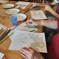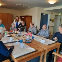 Begonnen wurde heute mit einem Malkurs. Gemeinsam wurde gezeichnet, mit Wasserfarben und Stiften gemalt. Am Ende waren alle sehr stolz auf Ihre kleinen Meisterwerke.