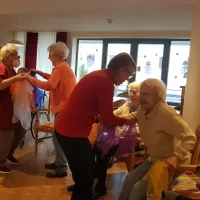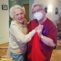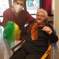 Wer rastet der rostet... Das ist ein guter Vorsatz für das neue Jahr, um immer in Bewegung zu bleiben. Wenn das Wetter, so wie zur Zeit, noch nicht zum Spazierengehen einlädt, müssen andere Wege gefunden werden, um fit zu bleiben. Die Sitzgymnastik ist dabei eine gute Möglichkeit. Frau Haag hat diese Gymnastikrunde mit musikalischer Untermalung zu einem Sitztanz gemacht, der sogar Pflegemitarbeiter und auch eine angehörige zum spontanen Mitmachen animierte.