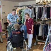 Heute hieß es wieder "Shoppen bis der Arzt kommt". Das Modemobil war wieder da und hat saisonale Bekleidung von oben bis unten mitgebracht, aber auch schon die neue Kollektion für den anstehenden Herbst und Winter. Unsere Bewohnerinnen und Bewohner haben fleißig geschaut, anprobiert und eingekauft.