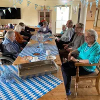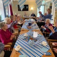 Auch in unserer Einrichtung feierten wir drei zünftige Oktoberfeste mit unseren Bewohnerinnen und Bewohnern. Den Anfang machten die Bewohner, die ihre Mahlzeiten in unserem Hausrestaurant einnehmen. Danach folgten die Tagespflegen der Wohnbereiche A/B und C/D. Neben der musikalischen Unterhaltung hatten sich unsere Mitarbeiterinnen des Begleitenden Dienstes einige unterhaltsame Spiele, wie z. B. Maßkrugstemmen oder Nägel einschlagen, und Rätsel rund um das Thema überlegt. Bei Bier und allerlei bayrischen Leckereien aus unserer Küche ließen es sich die Bewohner gut gehen. Die Stimmung war bei allen drei Veranstaltungen super und die Bewohnerinnen und Bewohner hatten sehr viel Spaß!