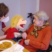 Unsere Mitarbeiter des Begleitenden und Sozialen Dienstes nutzen in ihrer täglichen Arbeit gern die Therapiepuppe, die gemeinsam mit den Bewohnerinnen und Bewohnern liebevoll auf den Namen "Olaf" getauft wurde.