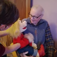 Unsere Bewohnerinnen und Bewohner freuen sich immer sehr, wenn Olaf Ihnen mal wieder einen Besuch abstattet und ihnen mit seiner lustigen und manchmal auch etwas frechen Art ein Lächeln ins Gesicht zaubert. Dann darf auch mal ordentlich geknuddelt und gekuschelt werden.