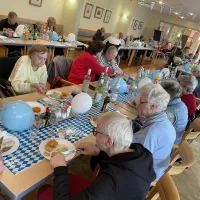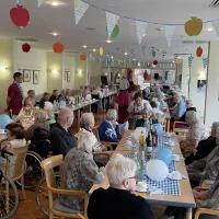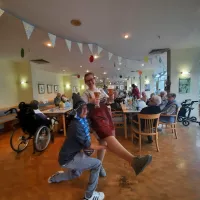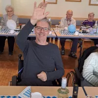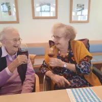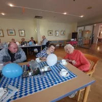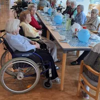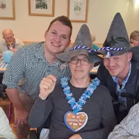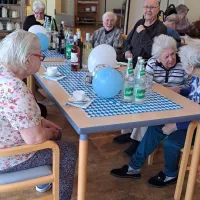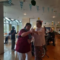 Von allen lange herbei gesehnt, konnten wir am 24. Oktober 2023 mit unseren Bewohnerinnen und Bewohnern unser diesjähriges Oktoberfest feiern. Aufgeregt verliefen die Wochen der Organisation vor dem Fest. Das Haus wurde herbstlich dekoriert und schon in der Woche vor dem Fest wurden der Eingangsbereich und die Wohnbereiche in blau-weiß getaucht. Die Vorfreude aller BewohnerInnen zeigte sich auch in der großen Teilnehmerzahl, denn unser festlich und zünftig hergerichtetes Hausrestaurant war fast bis auf den letzten Platz besetzt.