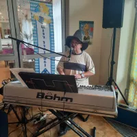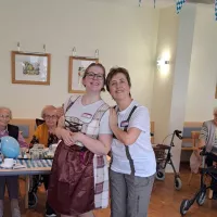 Begonnen wurde die Veranstaltung mit Kaffee und selbstgebackenem Kuchen. Unser allseits beliebter Haus- und Hofmusiker, Herr Helmut Hill, untermalte den gesamten Nachmittag musikalisch mit stimmungsvollen Hits, die zum Mitsingen, Schunkeln und Tanzen einluden. Unsere MitarbeiterInnen des Begleitenden und Sozialen Dienstes, die gemeinsam mit dem Pflege- und dem Küchenpersonal den Nachmittag begleiteten, hatten es sich nicht nehmen lassen, sich traditionell zu kleiden. So war neben den spitzen Seppl-Filzhüten, auch ein Dirndl zu sehen.