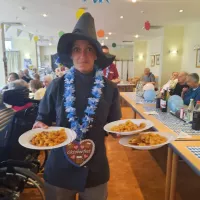 Auch unsere BewohnerInnen, die aus gesundheitlichen Gründen nicht an der Veranstaltung teilnehmen konnten wurden natürlich nicht vergessen. Unser Leiter des Begleitenden Dienstes, Herr Eric Wehnert, verteilte gemeinsam mit unserem Pflegeprozessbeauftragten, Herrn Lauren Börner, die Schlemmereien und Getränke auch in den Zimmern.