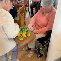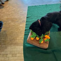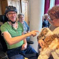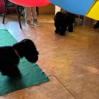 Im monatlichen Veranstaltungsplan schon lange angekündigt, freuten sich alle Bewohnerinnen und Bewohner schon sehr auf den tierischen Besuch am 05.06.2024. Frau Gaßmann aus dem Landkreis Hameln-Pyrmont reiste an und veranstaltete mit ihren drei Cocker-Spaniel eine Hundeshow. Die drei trainierten Hunde präsentierten allerlei Kunststücke. Dabei fuhren sie auf einem Skateboard, sprangen durch Reifen und apportierten verschiedene Gegenstände. Darüber hinaus stellten sie ihre Spürnasen unter Beweis und erschnüffelten Leckerlies, die in verschiedenen Gegenständen versteckt waren.
