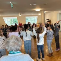 Am 31.03.2025 besuchte eine Gruppe Schüler der benachbarten Grundschule "Am Schildberg" unsere Bewohnerinnen und Bewohner. Die Schüler hatten einen Tanz zu dem bekannten Lied "So ein schöner Tag" einstudiert, sowie das Gedicht "Stups, der kleine Osterhase". Beides wurde in gemütlicher Runde vorgetragen, sehr zur Freude unserer Bewohner.
