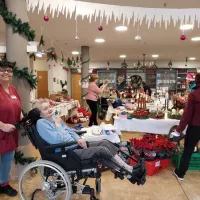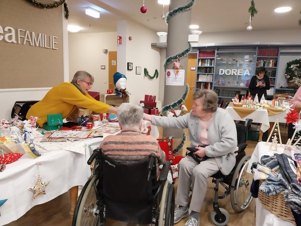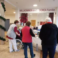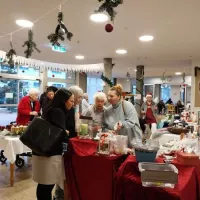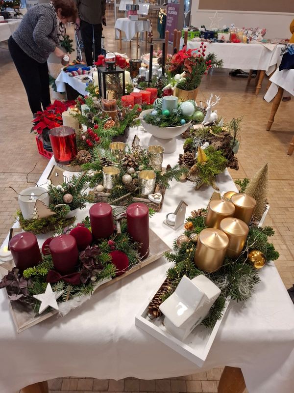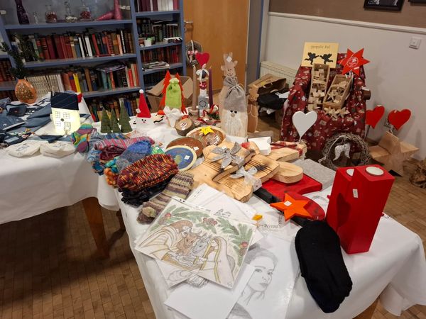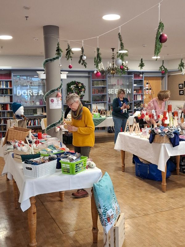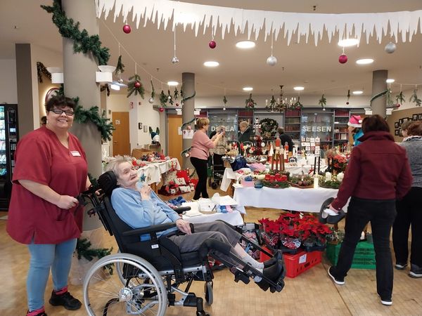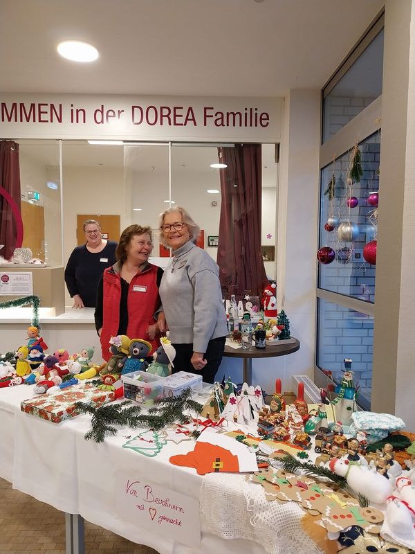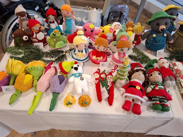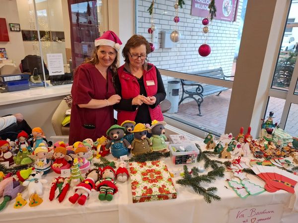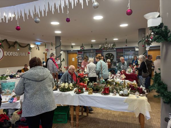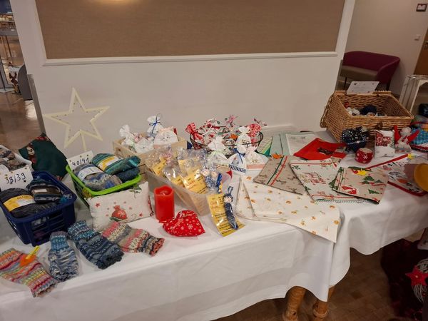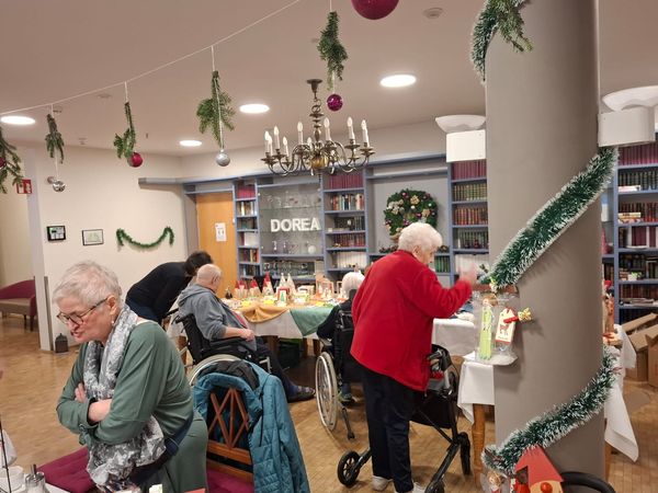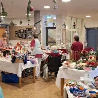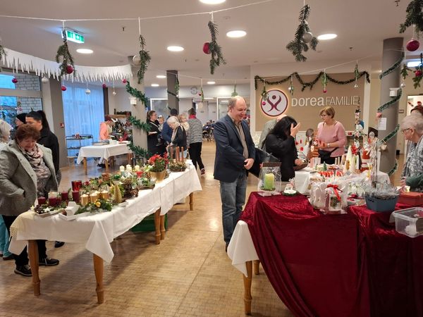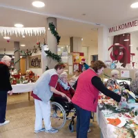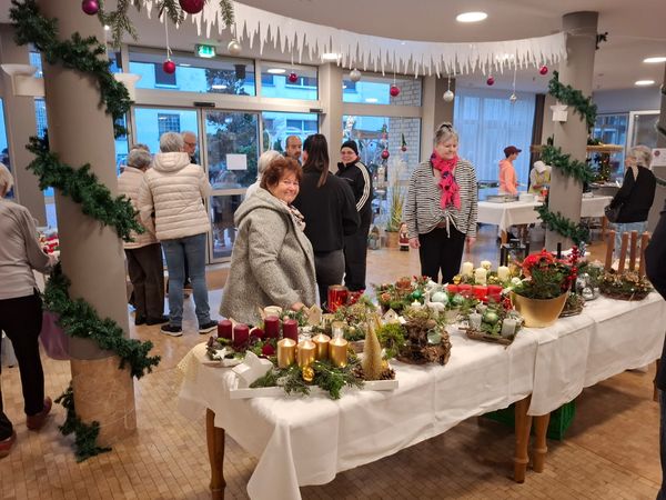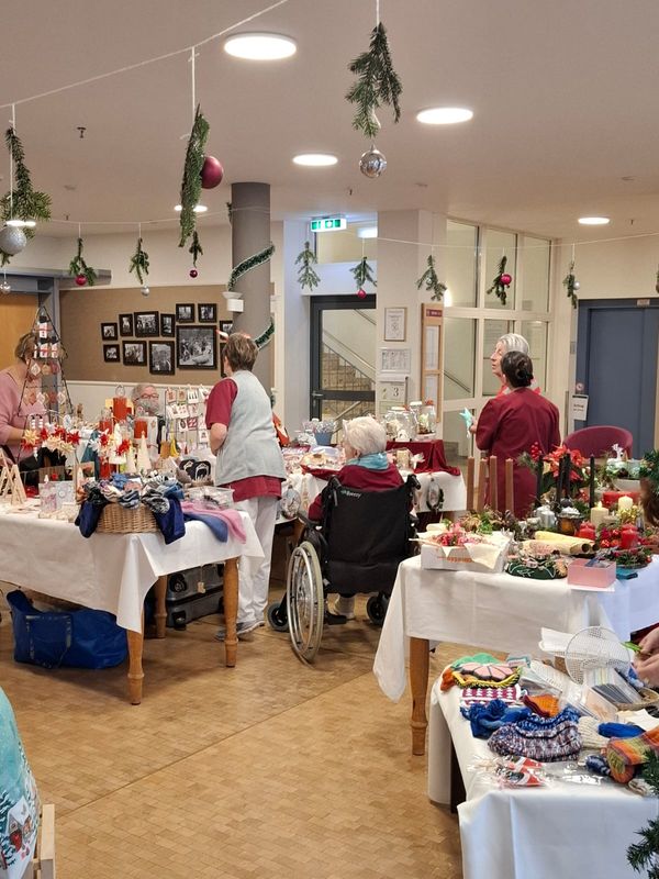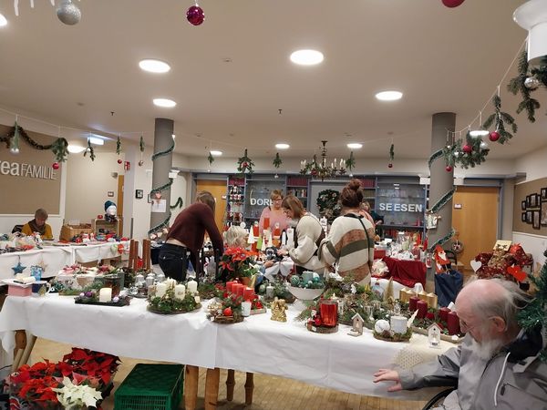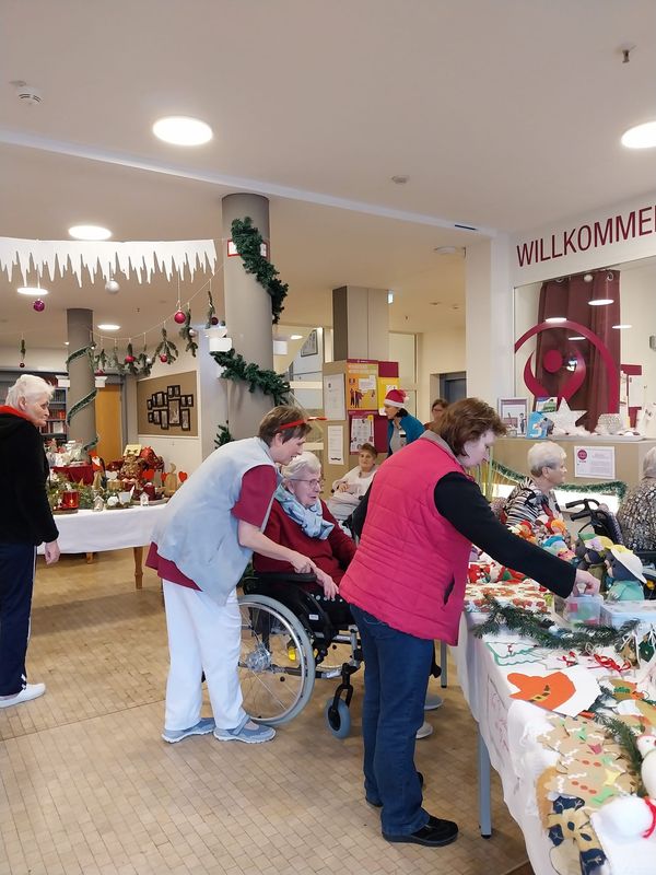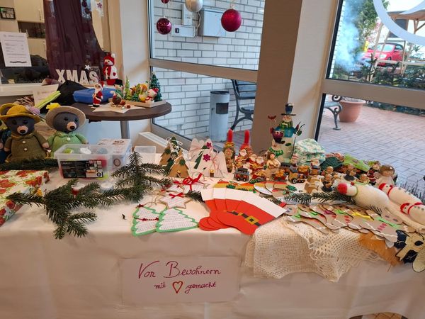 In diesem Jahr haben wir erstmals einen Adventsmarkt in unserer Einrichtung veranstaltet. Verschiedene Stände luden Bewohner und Besucher zum Bummeln ein. Die liebevoll gestalteten Handarbeiten, Gestecke, Weihnachtssterne, Karten, etc. verleiteten zum shoppen. So konnten kleine Weihnachtsgeschenke für die Liebsten erstanden werden.