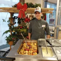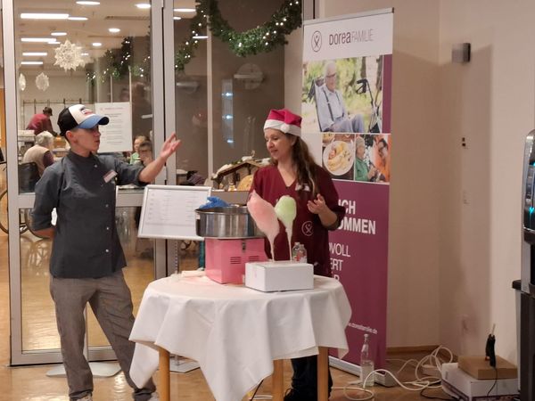 Natürlich war auch für das kulinarische Wohl bestens gesorgt. Schon vor dem Haupteingang konnte sich mit Glühwein und Bratwurst gestärkt werden. Für die Schleckermäulchen gab es im Foyer Bratäpfel mit Vanillesauce, selbstgemachte Waffeln und Zuckerwatte.