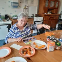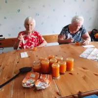 Auch in diesem Sommer hat sich wieder eine kleine Gruppe Bewohnerinnen gefunden, die unter Anleitung unserer Mitarbeiterinnen des Begleitenden und Sozialen Dienstes mit viel Hingabe die Früchte putzen und zerkleinerten. Nach dem Kochen wurde die Marmeladenmasse in Gläser abgefüllt, abgekühlt und eingelagert. Natürlich wurde die Marmelade von unseren fleißigen Helferinnen auch verkostet.