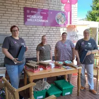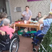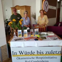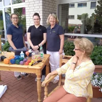 Schon lange im Voraus begannen die Planungen für unsere Festwoche zum 25jährigen Bestehen unserer Einrichtung. Nach der langen Zeit der Organisation und Vorbereitung war es nun endlich soweit.... Mit dem Nachmittag zum Thema "Wellness" fiel der offizielle Startschuss. Neben Informationsständen der Hospizinitiative Bad Gandersheim e. V. und der Max & Moritz-Apotheke Seesen, gab es auch weitere beim Sanitätshaus Sturm die Möglichkeit die Venentätigkeit messen und direkt am Laptop auswerten zu lassen. Die Praxis für Physiotherapie am Stadtpark bot mit dem Schröpfen, eine Form der Faszien- und Muskelbehandlung, eine aktive Möglichkeit zur Entspannung. Für weitere Entspannung sorgte der Reiki-Meister Olaf Rudat mit seinen Behandlungen mit dem Auflegen der Hände und einer Klangschalentherapie. Am Stand unserer Einrichtungsleitung Frau Kreth wurde ein Trinkspiel geboten, bei dem es gesunde und leckere Obstspieße oder Gemüsespieße mit einem Schälchen hausgemachtem Kräuterquark zur Belohnung gab.