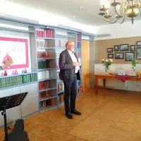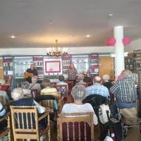 So eröffnete Frau Kreth die Veranstaltung mit einer Rede, in der Sie sowohl den Fotomodels, als auch den fleißigen Helfern bei der Planung und Umsetzung dankte, und begrüßte im Anschluss herzlich den stellvertretenden Landrat des Landkreises Goslar, Herrn Dreß. Auch dieser hatte eine Ansprache vorbereitet, in der er unsere Bewohnerinnen und Bewohner motivierte auch weiterhin aktiv am Gemeinschaftsleben teilzunehmen. Er gratulierte der Einrichtung zu dem besonderen Jubiläum und schaute sich gemeinsam mit Frau Kreth die ausgestellten Fotografien an.