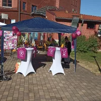 Der dritte Tag unserer Festwoche begann ab 09.00 Uhr auf dem Seesener Wochenmarkt. Unsere Pflegeschüler betreuten einen Informationsstand zum Thema "Pflegeausbildung in der DOREAFAMILIE". Als weiteres Highlight hatten sie sich ein Quiz überlegt, bei dem Interessierte Knochen des menschlichen Skeletts bestimmen konnten. Als Belohnung gab es kleine Merchandise-Pakete unseres Hauses bestehend aus Stofftasche, Fähnchen, Schlüsselband, Kugelschreiber und Haftnotizblock.