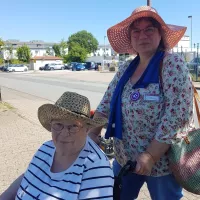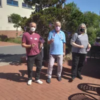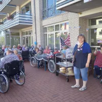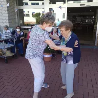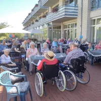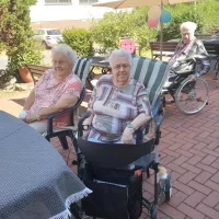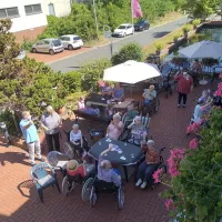 Am Nachmittag hatte der Entertainer Paul Harvin seinen großen Auftritt. Er unterhielt die Bewohnerinnen und Bewohner auf der schönen Terrasse vor unserem Haupteingang mit alten amerikanischen Song-Klassikern von "What a wonderful world" über "Que Sera" bis hin zu "New York, New York" und "My way". Die Songs luden zum Schunkeln und Mitsingen ein, auch das Tanzbein wurde trotz der hohen Temperaturen geschwungen.