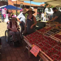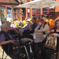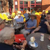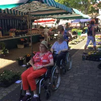 Auch unsere Bewohnerinnen und Bewohner ließen es sich nicht nehmen, die Pflegeschüler auf dem Wochenmarkt zu besuchen. Natürlich wurde der Besuch auch genutzt, um ein bisschen einzukaufen und sich zum Schluss in der Eisdiele bei Kaffee und leckerem Eis für den Rückweg zu stärken. Alle die diesen nicht mehr zu Fuß schafften, wurden von unserem hauseigenen Fahrer Herrn Kowalski abgeholt und sicher in die Einrichtung zurück gebracht.
