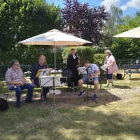 Mit der Eröffnung war auch der Startschuss für das Enzian-Duo gefallen, welches uns den gesamten Nachmittag mit altbekannten Schlagern unterhielt. Es wurde gelacht, gesungen, geschunkelt und auch getanzt.
