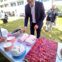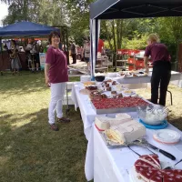 Nach dem Gottesdienst begann unser großes Sommerfest mit der Eröffnungsansprache von Frau Kreth. Auch der Seesener Bürgermeister Herr Erik Homann war anwesend und hielt eine Ansprache. Im Anschluss daran wurde im die Ehre zuteil die Geburtstagstorte in Form einer "25" anzuschneiden. Damit war das Kaffee und Küchen-Büffett eröffnet und alle Anwesenden konnten sich die leckeren Torten und Kuchen schmecken lassen.