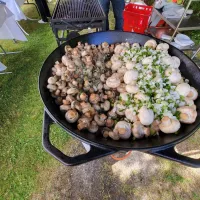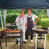 Etwas später wurde der Grill angefeuert und es gab leckere Bratwurst mit verschiedenen Salaten. In diesem Jahr hatte sich unser Küchenteam noch etwas ganz besonderes überlegt und bot eine Champignonpfanne mit Dip an, die sehr gut ankam.