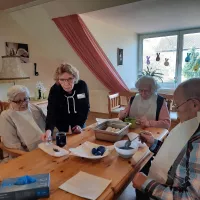 Zu den Osterfeiertagen haben sich die Mitarbeiter des Begleitenden und Sozialen Dienstes ein buntes Programm überlegt. Angefangen an Karfreitag mit dem obligatorischen Eierfärben, über ein kleines eigenes Osterfeuer im Feuerkorb mit Stockbrot und einem kühlen Bier am Ostersamstag und einer schokoladigen Überraschung am Ostersonnntag. Abgeschlossen wurden die Ostertage mit dem Film "Jesus" bei einem gemütlichen Filmnachmittag.