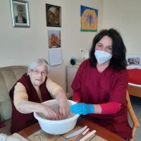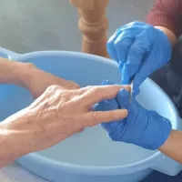 Am Wochenende boten unsere Mitarbeiterinnen des Begleitenden und Sozialen Dienstes unseren Bewohnerinnen und Bewohnern ein Verwöhnprogramm für die Hände an. Gerade in der Winterzeit kommen die Hände beim täglichen Pflegeprogramm häufig zu kurz. Darum steuerten unsere Mitarbeiterinnen nun mit wohltuenden Handbädern, einem umfangreichen Nagelpflegeprogramm und anschließenden Cremekuren mit Massagen gegen. Die Damen konnten sich neben der normalen Nagelpflege ihre Nägel noch mit einem Nagellack verschönern lassen.